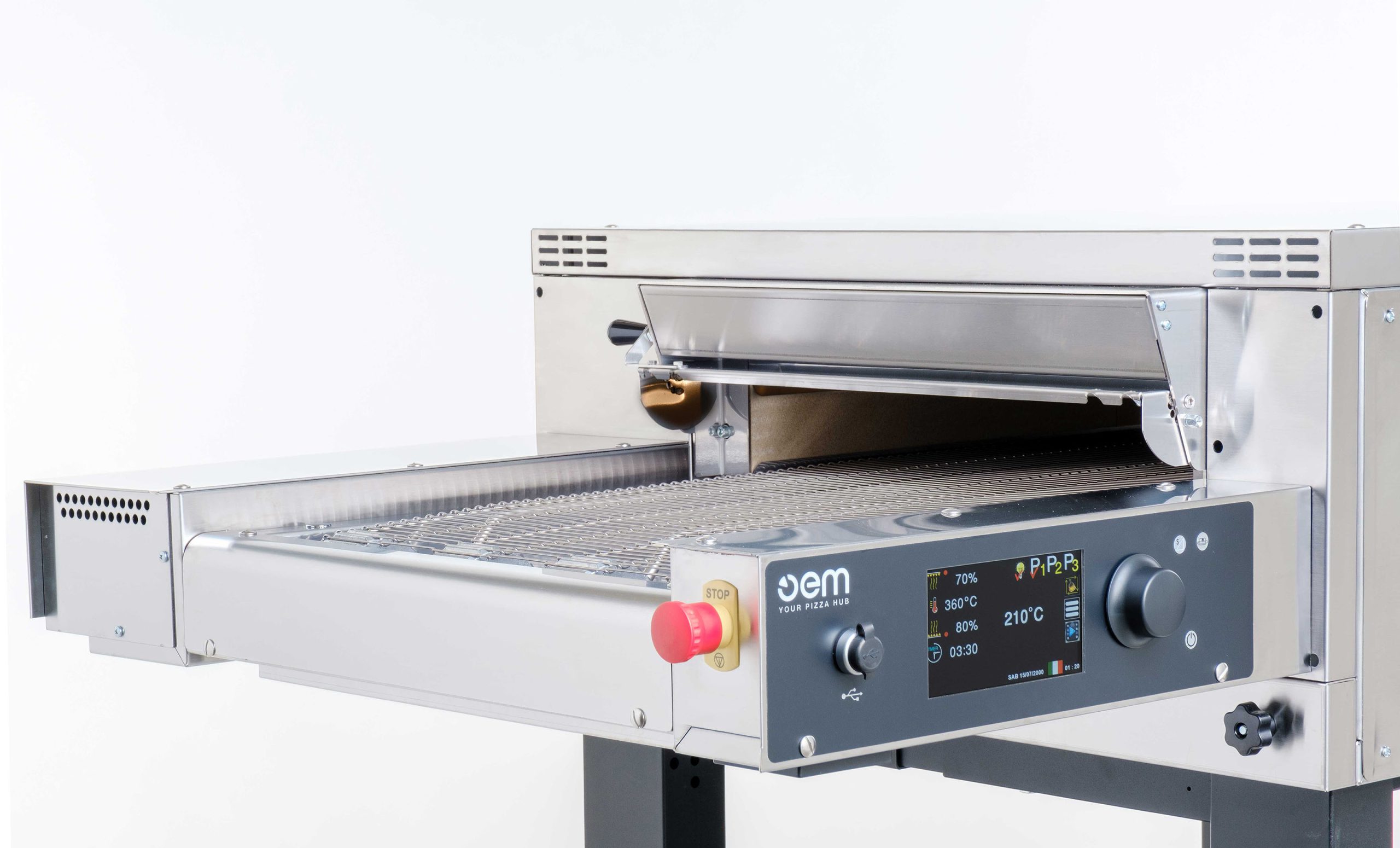 Il pannello comandi digitale ti permette di programmare la cottura regolando temperatura e tempo in funzione della velocità del nastro. Ha 7 programmi di cottura personalizzabili secondo le tue esigenze e, inoltre, la funzione Eco Mode per economizzare i consumi durante le pause lavorative.